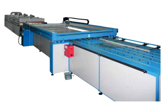 Unikatowe półautomatyczne linie do druku na szkle są idealne do druku dużych i małych formatów szkła o grubości szkła od 2mm do 20mm. Linia zbudowana jest z 5 podstawowych zespołów, które zostały sztywno połączone ze sobą tworząc ciąg technologiczny. Wszystkie zespoły linii współpracujące ze sobą są w pełni zsynchronizowane. Linia do druku szkła posiada stół nakładczy, na którym układa się taflę szklaną pozycjonując ją przy bocznej listwie bazowej i inicjuje impuls, który uruchamia linię. Szybę transportowana jest ze stołu nakładczego w cyklu automatycznym do maszyny sitodrukarskiej i pozycjonowana przy belce czołowej, która uruchamia druk. Po wykonaniu druku w cyklu automatycznym szyba transportowana jest na stół pośredni i następnie do tunelu suszącego IR gdzie następuje suszenie szkła i w dalszym ciągu na stół odbiorczy na którym kończy się cykl.